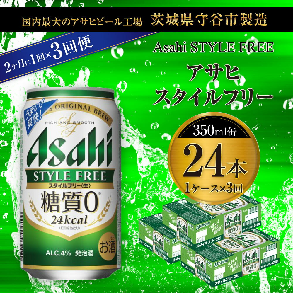 【ふるさと納税】【定期便】ビール アサヒ スタイルフリー<生> 350ml 24本 1ケース 2ヶ月に1回×3回便 【お酒 発泡酒 缶ビール アルコール zero stylefree 糖質制限 糖質ゼロ ギフト 内祝い お歳暮 茨城県守谷市】