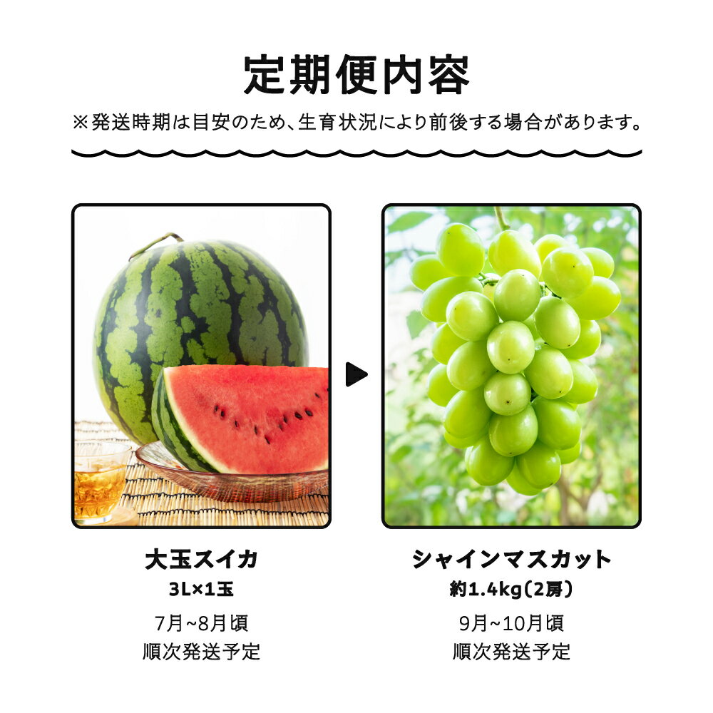 - 【ふるさと納税】【先行予約】フルーツ定期便 全2回 大玉すいか シャインマスカット 2026年産 令和8年産 ja-ft2ss ※沖縄・離島への配送不可
