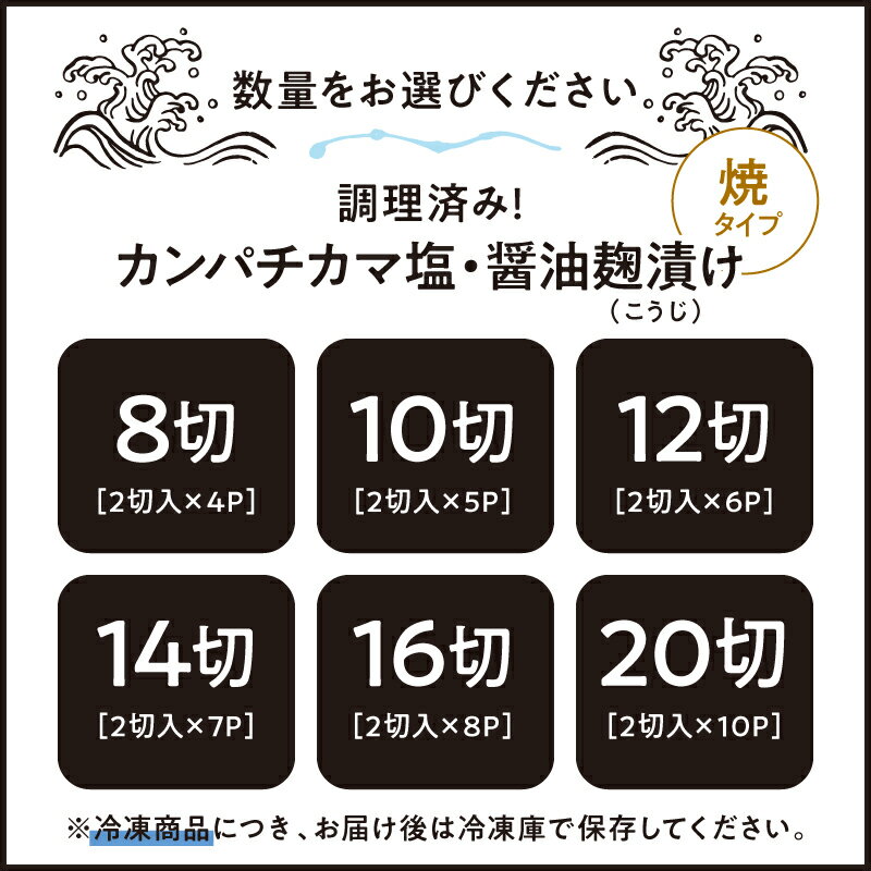 - 【ふるさと納税】<選べる>調理済み カンパチカマ塩 醤油麹(こうじ)漬け 8切 ~ 20切 焼タイプ 魚 海産物 魚介 カンパチ カマ 焼き 味付き レンジ 調理済み おかず 晩酌 冷凍 国産 鹿児島産 錦江の恵屋 鹿児島 鹿屋市 おすすめ ランキング プレゼント ギフト