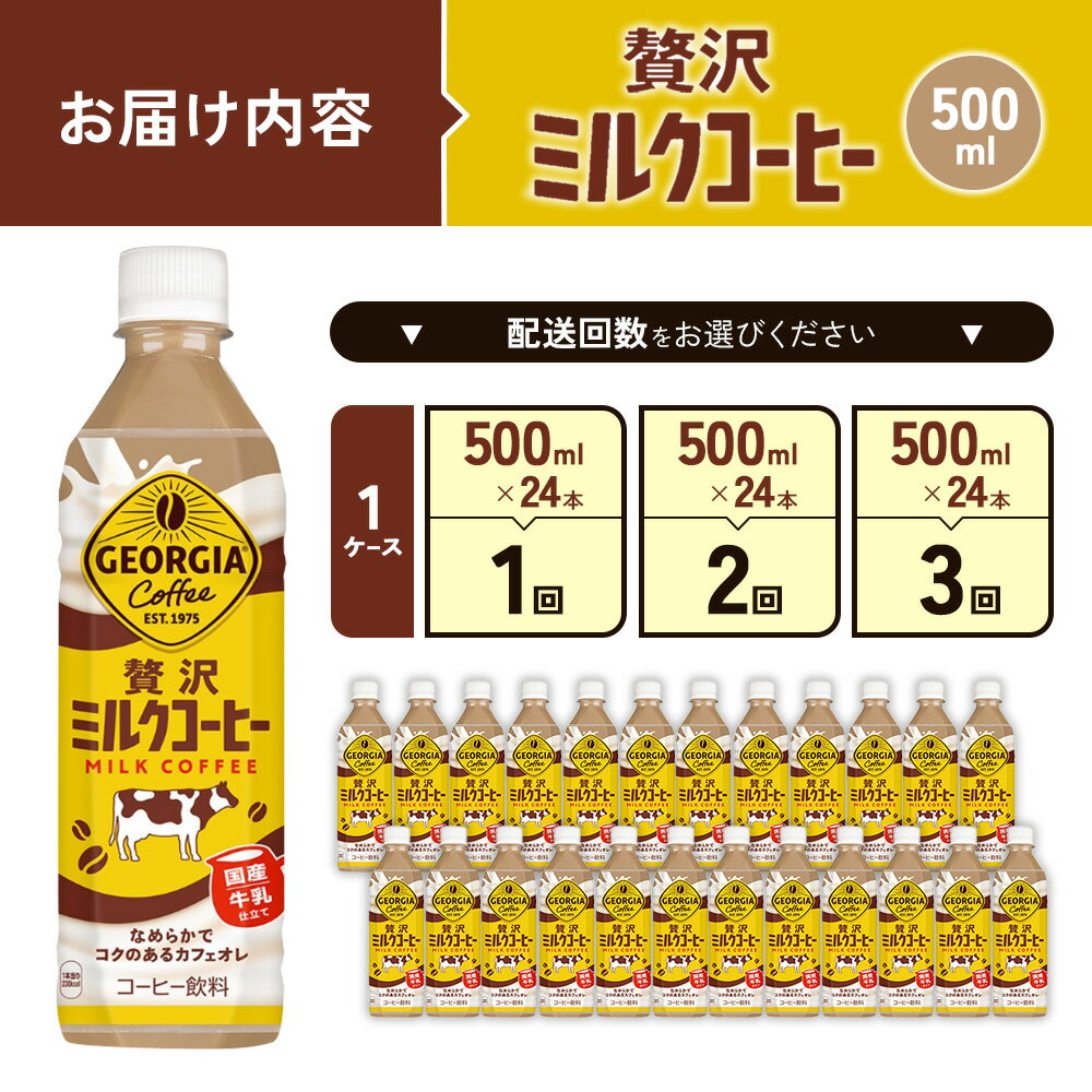 【ふるさと納税】【発送回数 選べる】ジョージア 贅沢ミルクコーヒー 500mlPET×24本 1ケース 定期便 2回(48本)3回(72本) カフェオレ コーヒー ペットボトル コカ・コーラ 送料無料