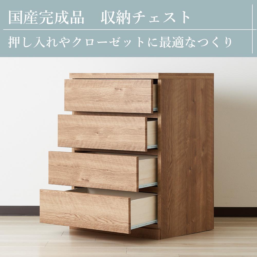 クローゼット チェスト 幅80 4段 奥行55 ホワイト色 タンス 押入れ収納 衣類収納 桐 箪笥 大川家具 丸田木工 フィット