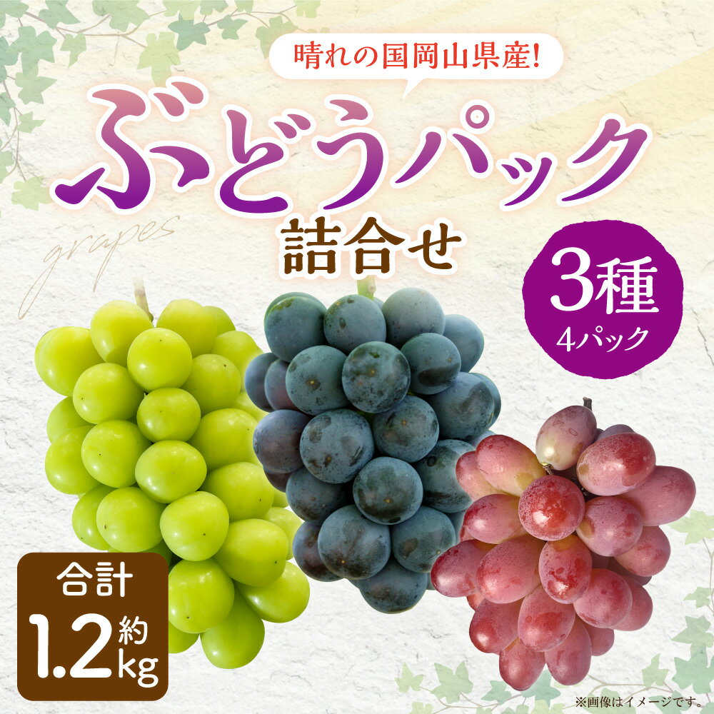 【ふるさと納税】岡山県産 ぶどう パック 詰合せ ※3種4パックセット 計約1.2kg 【2026年9月上旬~10月下旬発送予定】 岡山 シャインマスカット ニューピオーネ 旬 果物 くだもの フルーツ ぶどう ブドウ 葡萄 セット 奈義町 送料無料