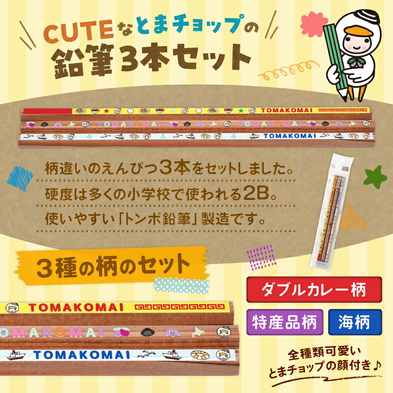 【ふるさと納税】 鉛筆 3本 セット とまチョップ キャラクター ご当地 えんぴつ 2B 文具 文房具 トンボ鉛筆 郵送 クリックポスト 苫小牧観光協会 北海道 苫小牧市 おすすめ ランキング プレゼント ギフト