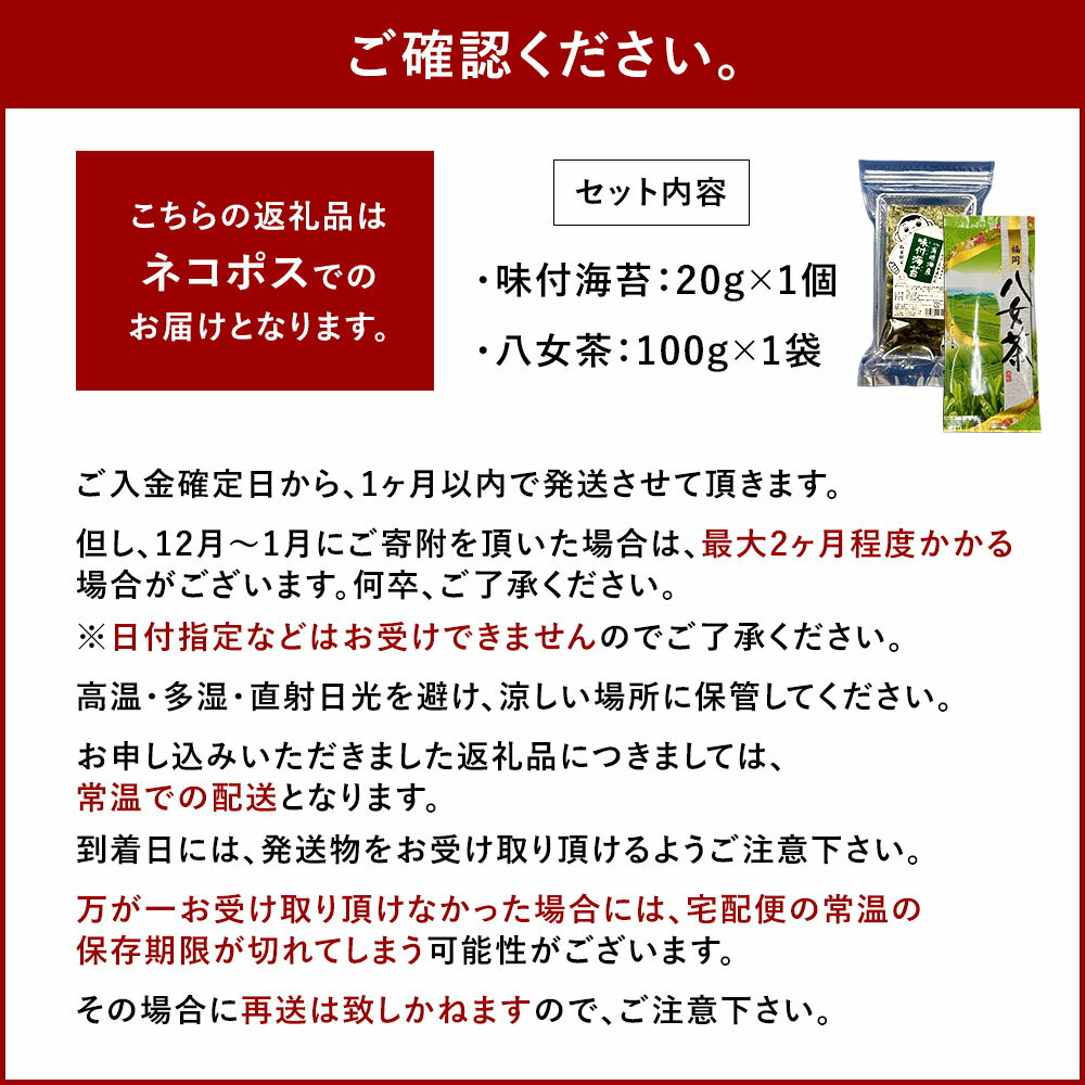 - 【ふるさと納税】訳あり 福岡県有明のり 味付海苔 ( 20g×1個 ) ・ 八女茶 ( 100g×1袋 ) セット 計120g 訳有 のり あじのり ごはんのお供 おにぎり おやつ おつまみ 手巻き寿司 朝ごはん 傷 不揃い 有明海産 香味逸撰 緑茶 日本茶 茶葉 旨味 コク 八女 福岡県 大任町