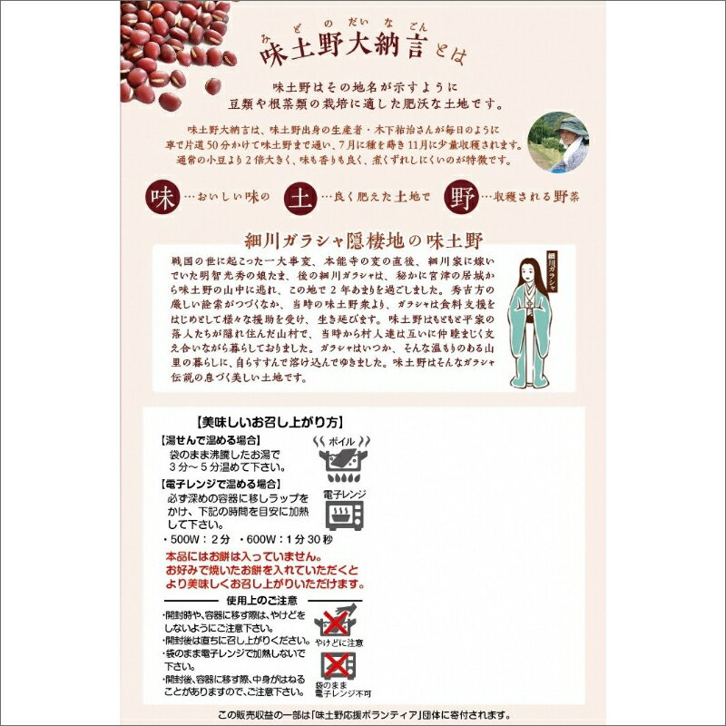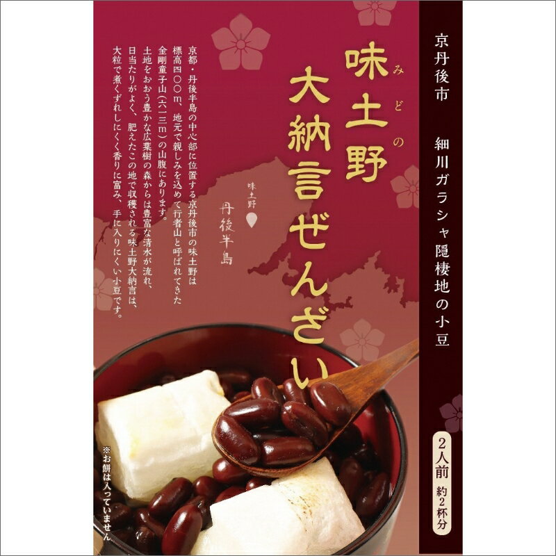 - 【ふるさと納税】<大粒あずき>味土野大納言ぜんざい(細川ガラシャ隠棲地の小豆~味土野大納言使用~) だいなごん 小豆 あずき ゼンザイ おしるこ 湯煎 和菓子 和スイーツ 国産 お祝い お取り寄せ お土産 グルメ 進物 ギフト 縁起物 正月 生産者応援 農家応援 送料無料