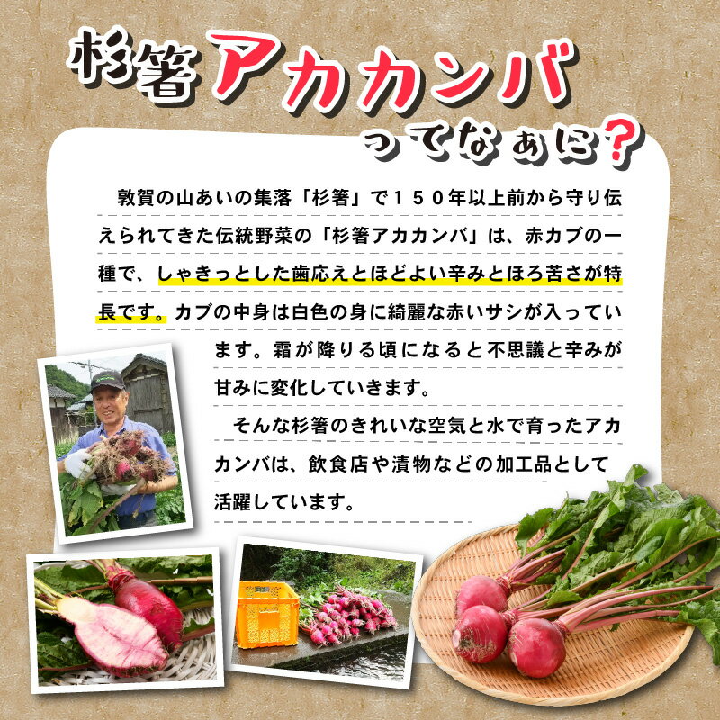 - 【ふるさと納税】産地直送!伝統野菜 「杉箸 アカカンバ ( 赤カブ ) 漬物・加工品 5種 計6袋 (600g)」 甘酢漬け 1袋、 たまり漬け 1袋、 ぬか漬け 2袋、ピクルス 1袋、さくらちらし寿司の素 1袋 【杉箸アカカンバ 赤かぶ 赤カブ 伝統野菜 加工食品】