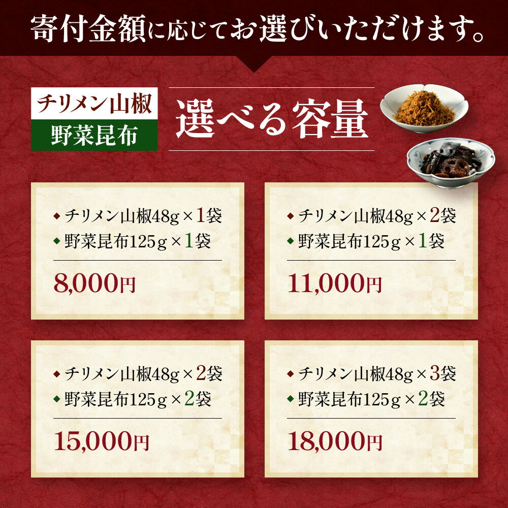 - 【ふるさと納税】【はれま】二種詰合せ チリメン山椒・野菜昆布 選べる容量|京都 ちりめん山椒発祥 有名店 保存料無添加 人気セット[ 伝統の味をご自宅で ちりめん山椒 昆布 ご飯のお供 グルメ おすすめ ギフト 贈答 お取り寄せ 通販 送料無料 ]