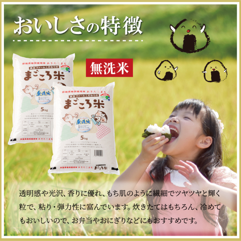 - 期間限定!【訳あり】【令和7年産】秋田県特別栽培米あきたこまち「まごころ米(無洗米)」 10kg(5kg×2袋) 140P9203