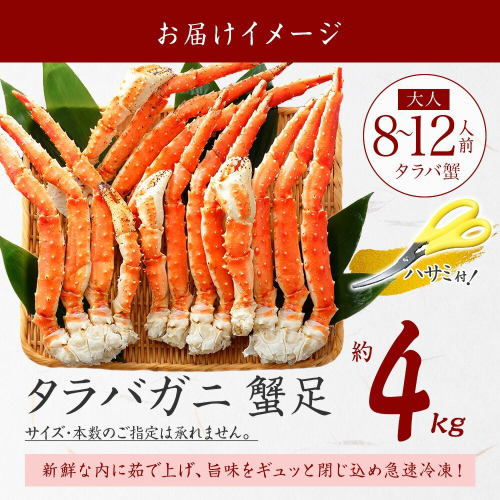 3180. ボイルタラバガニ足 4kg 食べ方ガイド・専用ハサミ付 カニ かに 蟹 送料無料 北海道 弟子屈町