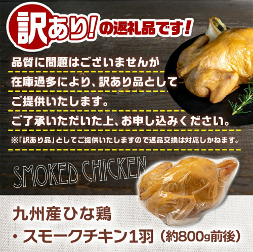 ★訳あり★【限定70セット】九州産ひな鶏スモークチキン1羽_LE-15-003-FDL