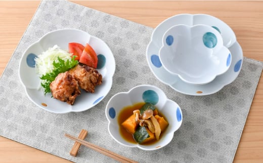 - 【大感謝祭対象】【波佐見焼】水玉 フラワー ボウル プレート セット 食器 皿 【松幸陶芸】 [HB47]