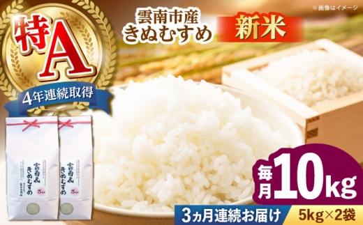 お米【全3回定期便】雲南市産きぬむすめ 10kg(5kg×2袋)米 こめ おこめ はくまい 白米 ライス 精米 コメ 特A 10キロ 使いやすい ごはん ご飯 おにぎり お弁当 朝ごはん 便利 朝食 食卓 主食 グルメ おいしい つや あっさり もっちり 食感 国産 新生活 一人暮らし 家族 ご当地 ごはんソムリエ おすすめ 人気 定期便島根県雲南市/有限会社藤本米穀店[AIDB103]