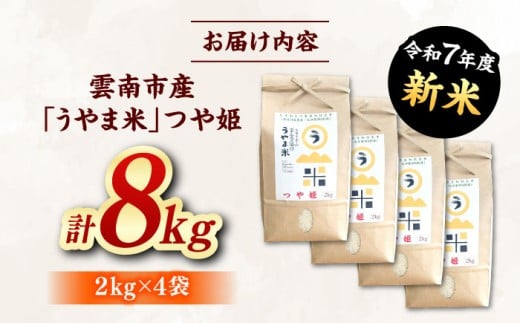 お米 神話の里/吉田町「うやま米」つや姫 8kg(2kg×4)白米 精米 コメ おこめ お米 つやひめ おすすめ 人気 米 ごはん ご飯 食卓 主食 ブランド米 お取り寄せ グルメ ご当地米 家族 ファミリー 一人暮らし 便利 8キロ おいしい ごはんソムリエ 種もみ ミネラル 国産 新生活 お弁当 朝ごはん 朝食 昼食 ご当地 島根県雲南市/有限会社藤本米穀店 [AIDB087]
