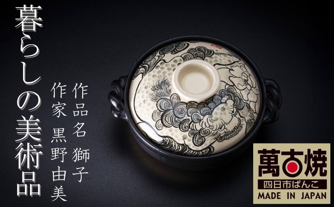 【萬古焼(ばんこやき)】暮らしの美術品 絵付けアーティストの個性が光るHandmade土鍋。絵付けART工房・平尾製陶 9寸 破墨彩土鍋 「獅子」【手描き 土鍋 ハンドメイド アート デザイン 鍋 家庭用 4人用 4人前 家族 冬 煮込み 手芸 工芸 三重県 四日市市 ふるさと納税】