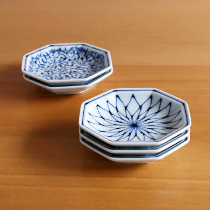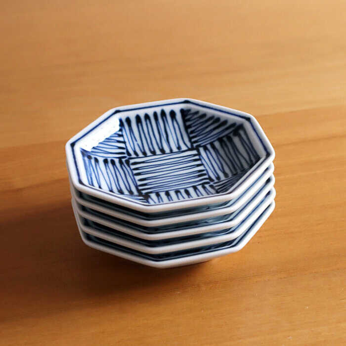 - 【ふるさと納税】【感謝祭対象】【白山陶器】【染付地紋】八角小皿 5柄セット【波佐見焼】[TA170]