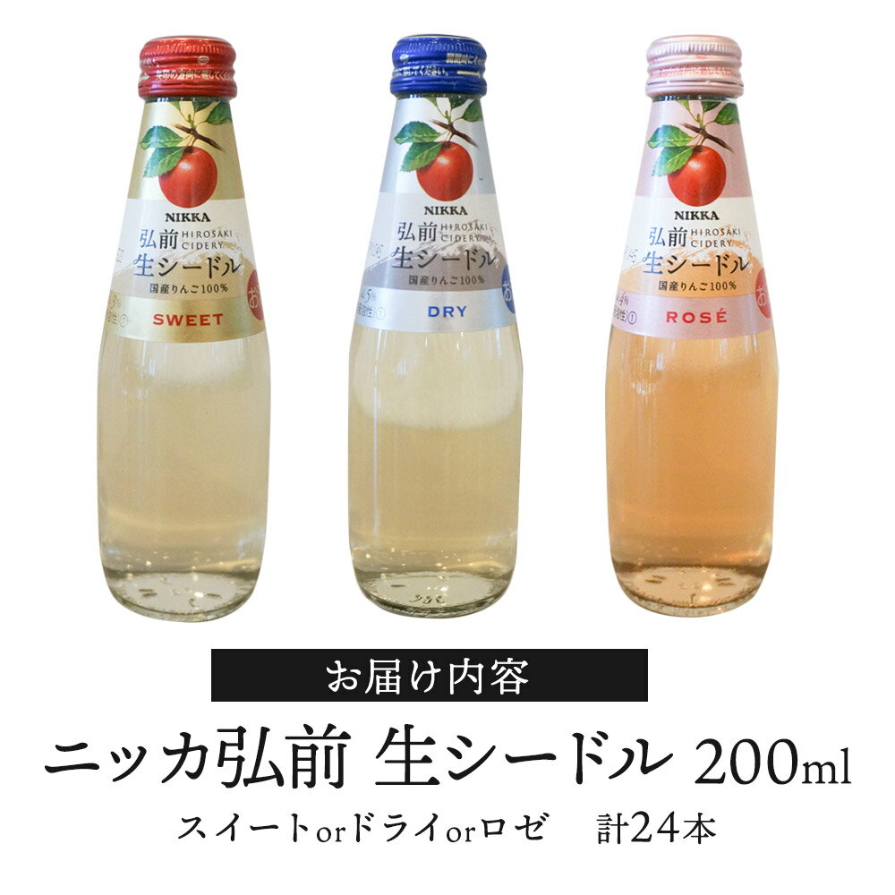 【ふるさと納税】ニッカ弘前 生シードル【選べる種類 スイート/ドライ/ロゼ】200ml 1ケース(24本) 国産りんご100%のスパークリング