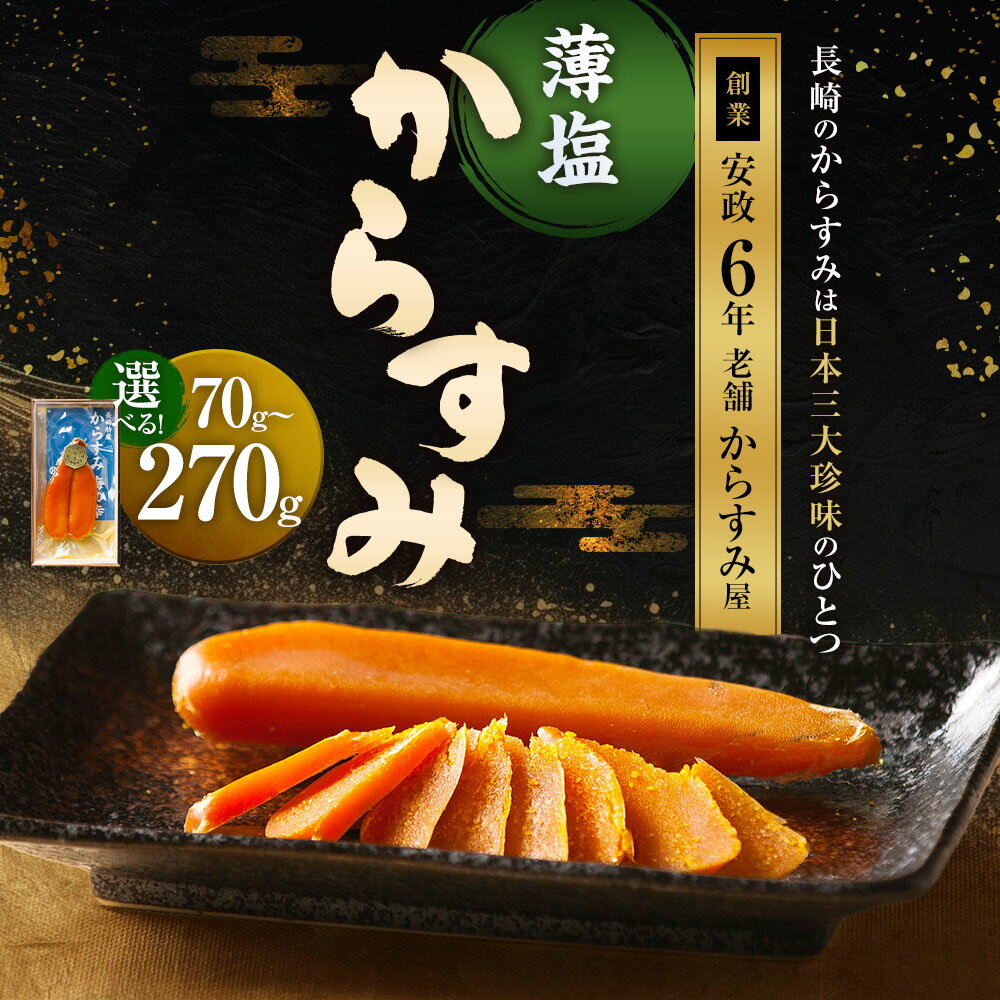 - 【ふるさと納税】【7営業日以内発送】創業安政6年 老舗からすみ屋の薄塩からすみ 選べる内容量 ( 70g / 110g / 180g / 240g / 270g ) | 唐墨 珍味 料理 おつまみ 酒の肴 日本酒 ワイン 長崎 カラスミ 魚卵 常温 長崎県 長崎市 送料無料