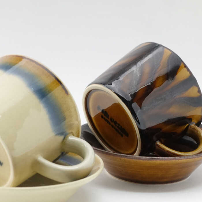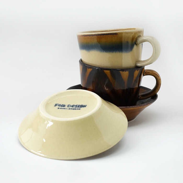 - 【ふるさと納税】【感謝祭対象】【波佐見焼】Folk Design 二色巻・矢羽根飴釉 コーヒー碗皿 カップ・ソーサー ペアセット 食器 皿 【玉有】 [IE20] 父の日
