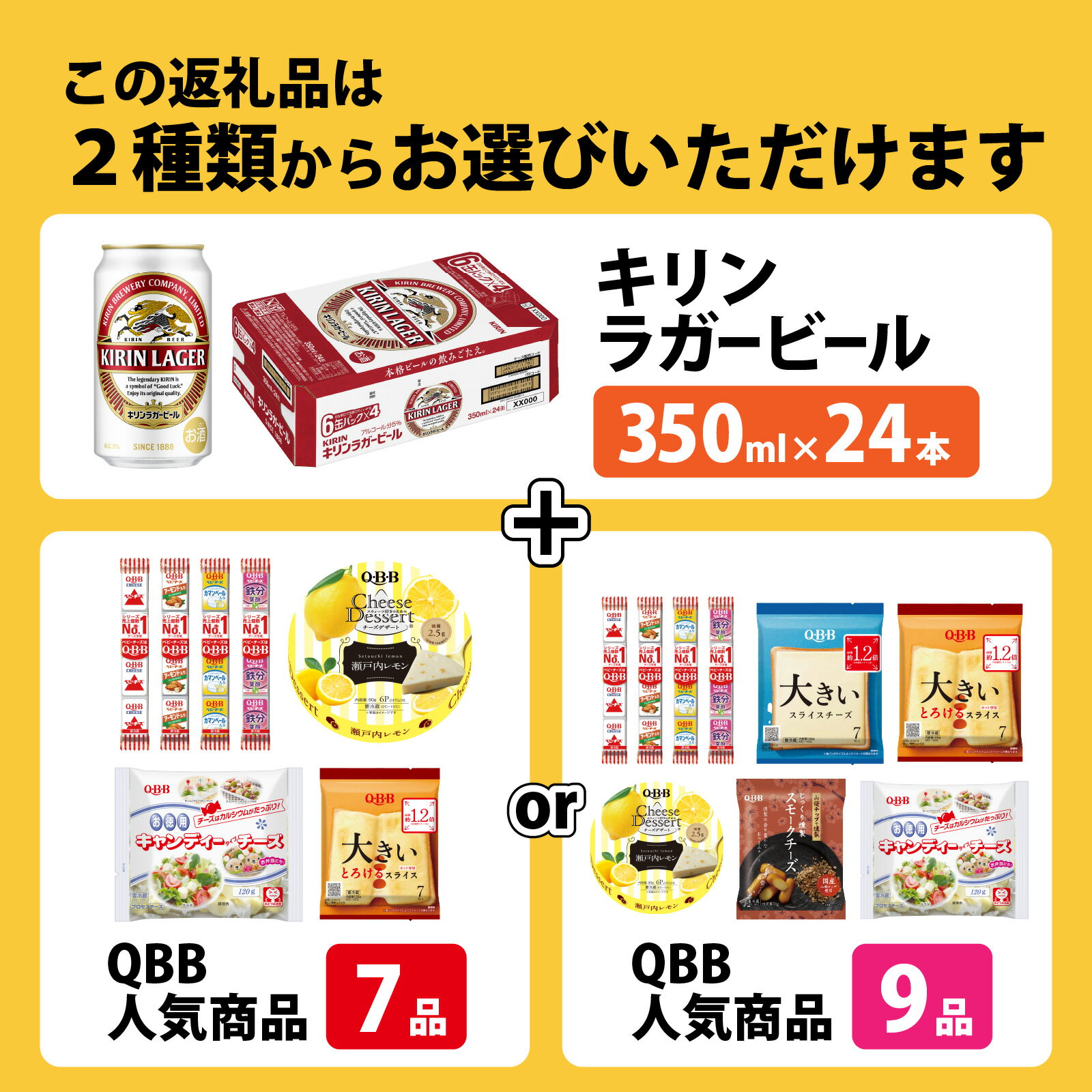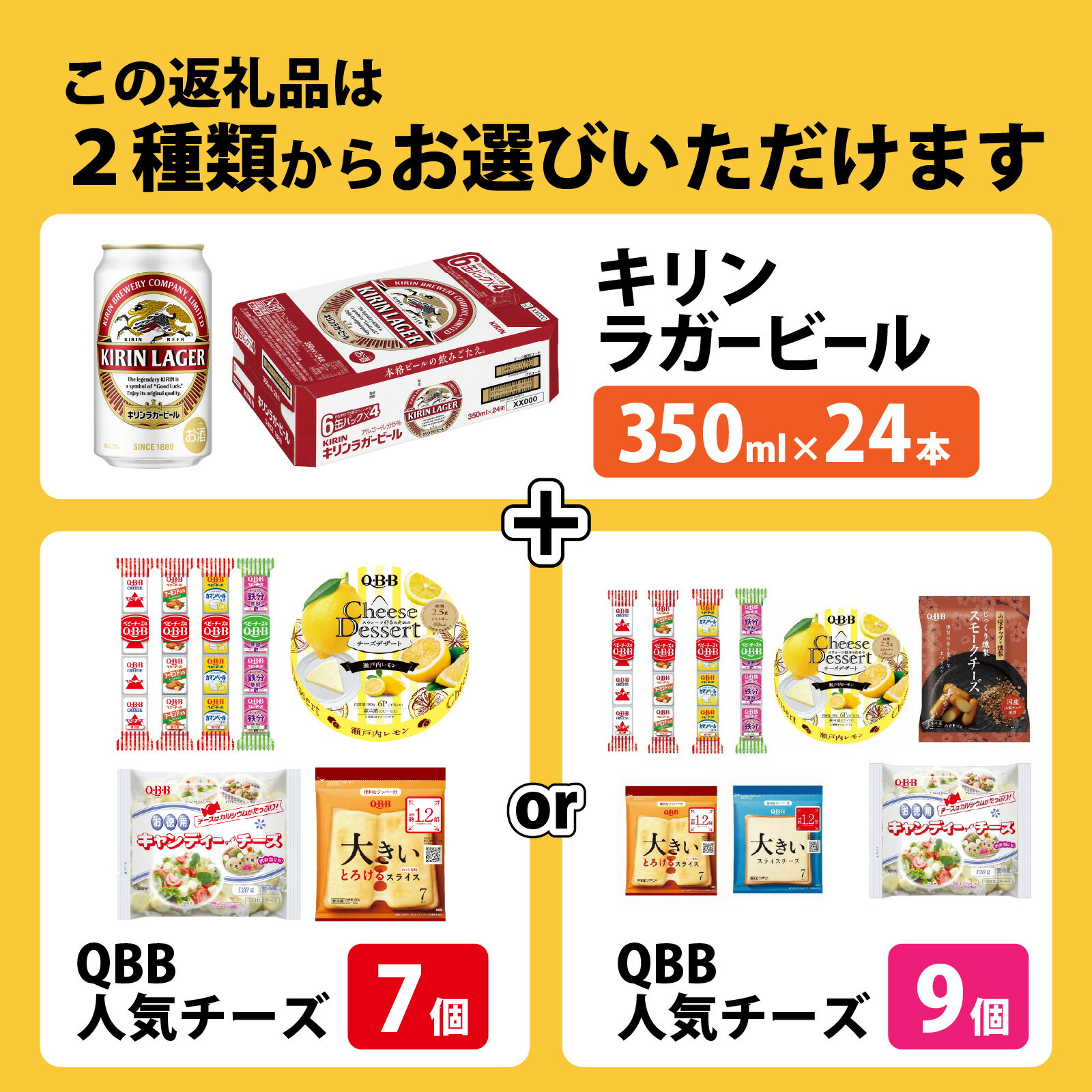 - 【ふるさと納税】【選べる内容量】キリンラガービール 350ml 24本 と QBB商品 7品 or 9品 / ビール キリンビール キリン 麒麟 KIRIN お酒 アルコール 缶ビール 缶 ラガービール 神戸 工場 チーズ おつまみ 晩酌 ギフト 兵庫県