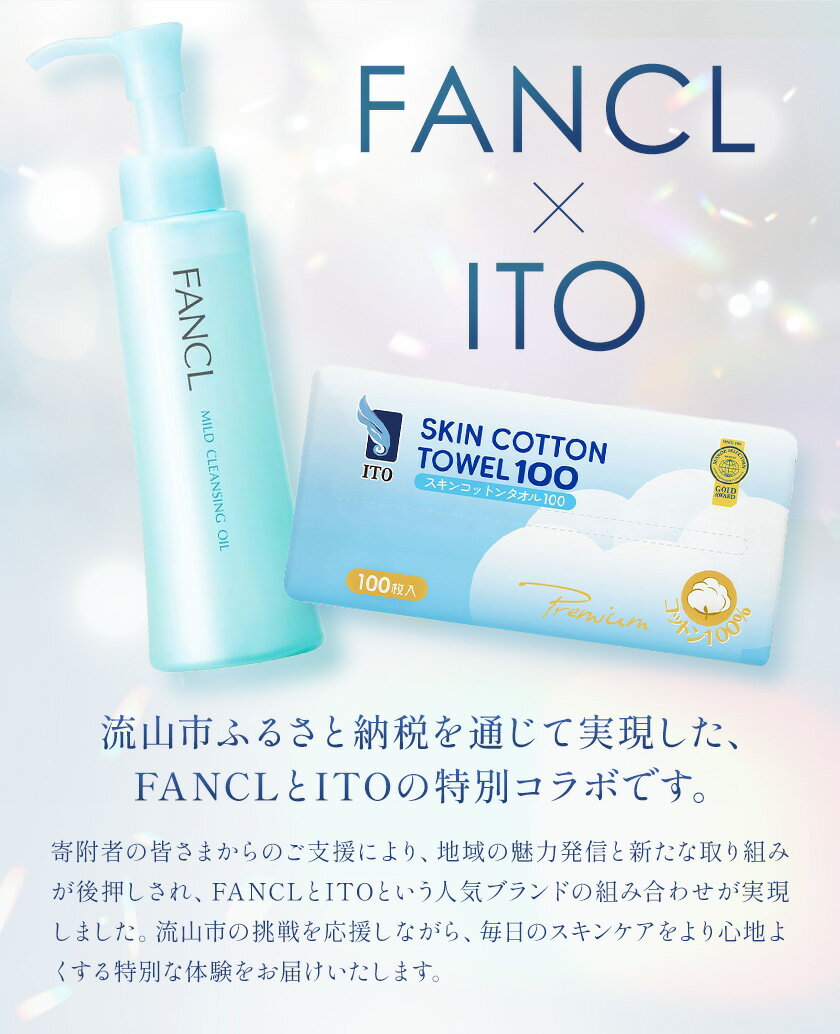 - 【ふるさと納税】【限定企画】ファンケル×ITO 特別コラボ マイルドクレンジングオイル ITOスキンコットンタオル100 ファンケル アィティーオー《入金確認後1~2ヶ月程で発送》千葉県 流山市 クレンジング コットン スキンケア メイク落とし フェイスタオル
