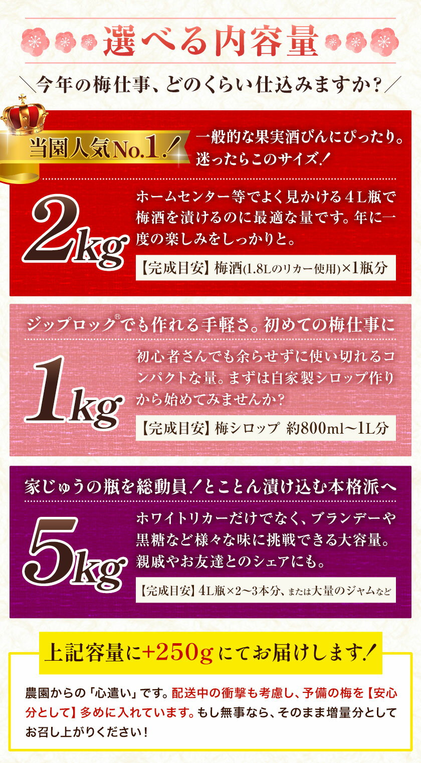 - 【ふるさと納税】厳選 紀州南高梅 選べる 1kg 2kg 5kg 傷み補償 梅干し 梅酒 梅ジュース 池田鹿蔵農園《6月上旬-6月末頃出荷予定》和歌山県 日高町 南高梅 完熟 青梅 送料無料【配送不可地域あり】