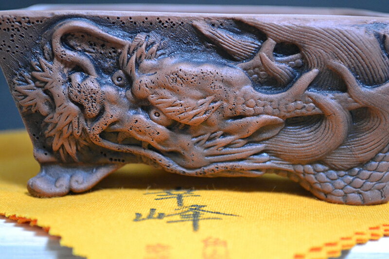 - 【ふるさと納税】常滑焼 龍長方鉢【桐箱付き】角山陶苑 焼き物 長方龍鉢 鉢 浮彫細工 盆栽 龍 幸峰作 朱泥 日本製 常滑 愛知県 園芸 和風 伝統工芸 特産品 送料無料