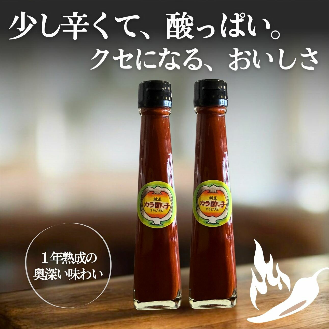 - 【ふるさと納税】カラ酢っ子 2本セット 調味料 辛味 唐辛子酢 辛酢 辛い調味料 熟成 調味料セット 無添加 万能調味料 常温保存 家庭用 ピザ パスタ 古民家カフェ 鍵屋 山梨 早川町