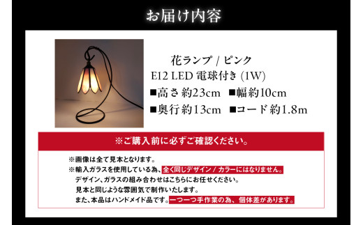 花ランプ【ピンク】/ インテリア ガラス 照明 ハンドメイド 愛知県