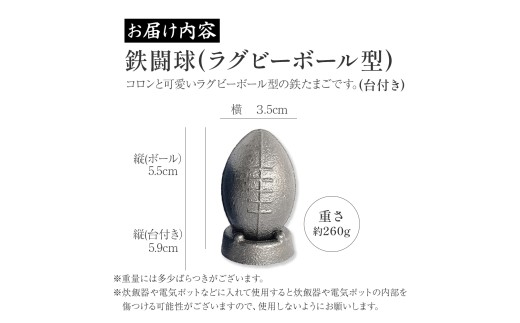 - 【鉄分補給に!】 岩鉄鉄器 の 鉄たまご 【鉄闘球(ラグビーボール型) 台付き】 × 1個 鉄分 補給 鉄タマゴ 鉄玉子 かわいい 鉄器 鉄製 岩手県 北上市 (C0595) 健康 調理 料理 日用 桜 鉄分 ギフト 贈物 敬老の日 長寿 喜寿 母の日 子供 赤ちゃん 出産 お祝い 食育 スポーツ ラグビー