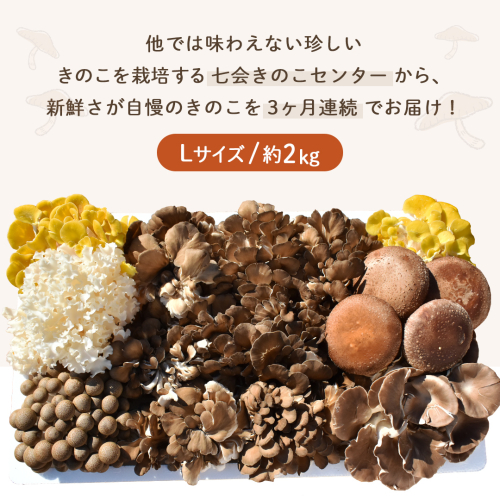 《 3ヶ月 連続定期便 》 きのこ の 詰め合わせ Lサイズ 約2kg (茨城県共通返礼品 城里町) 定期便 キノコ 舞茸 あわび茸 たもぎ茸 しいたけ 花びら茸 セット 鍋 炒め物 [CX007sa]