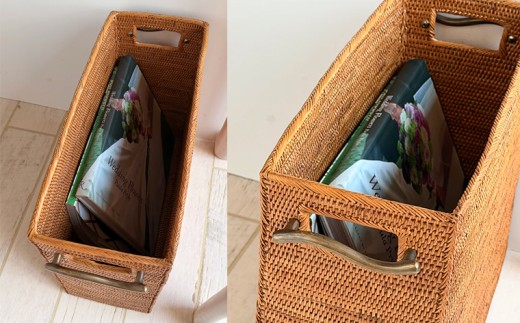 BAX-518SIN アタ 真鍮取っ手薄型バスケット(無地・W35×D15×H30) 真鍮 取っ手 薄型 すき間 細い 薄い 雑貨 収納 かご ケース バスケット 箱 物入れ グッズ オリジナル 手作り おすすめ リビング 雑誌 本 ファイル 新聞紙 ブランケット ゴミ箱 無地 プレゼント ギフト おしゃれ 高級感 職人 便利 数量限定 バリ島 アジアン ATABRASS SOA 千葉県 富津市