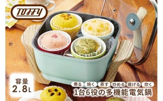 - Toffy コンパクトマルチ電気鍋K-HP3 カラー:ペールアクア 【 マルチ 多機能 電気鍋 コンパクト お手入れ 簡単 軽量 持ち運び 】
