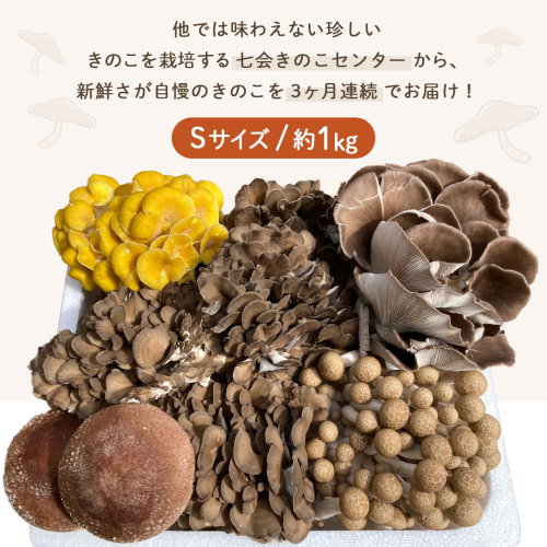 《 3ヶ月 連続定期便 》 きのこ の 詰め合わせ Sサイズ 約1kg (茨城県共通返礼品 城里町) 定期便 キノコ 舞茸 あわび茸 たもぎ茸 しいたけ ぶなしめじ セット 鍋 炒め物 [CX005sa]