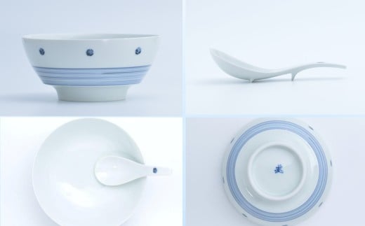 - 【有田焼】究極のラーメン鉢 レンゲセット(青芽吹き)[A0033-0024]