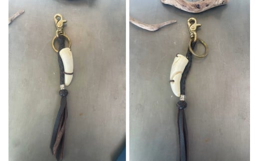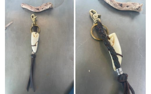 - DM009『クジラの歯で作ったキーホルダー』鹿革こげ茶