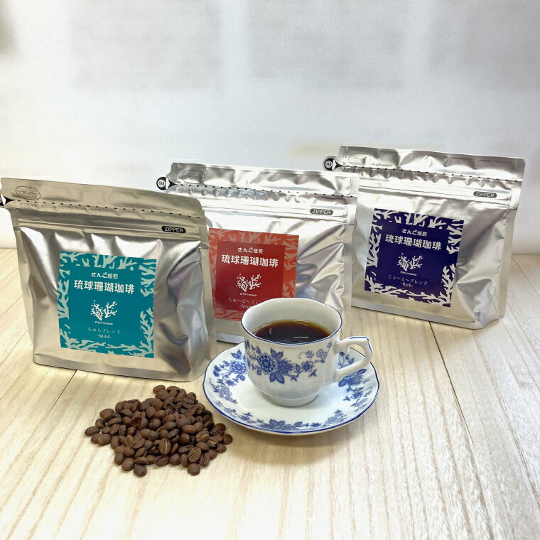 - 【ふるさと納税】【お歳暮・ギフト対応可】コーヒー ギフト 豆 琉球珊瑚珈琲 飲み比べ 600g ( ちゅらブレンド200g × ちゅーばーブレンド200g × じょーとーブレンド200g) 箱入り(AK003)
