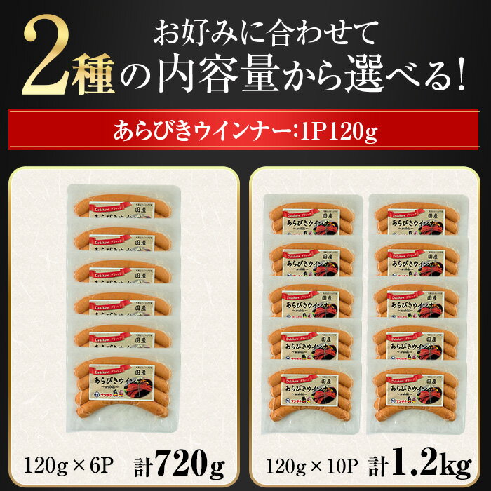 - 【ふるさと納税】<内容量が選べる>あらびきウインナー(計720g~1.2kg・120g×6P~10P) 豚肉 国産 ウインナー 惣菜 ソーセージ おかず 弁当 BBQ 朝食 夕食 キャンプ 加工品 小分け セット【ナンチク】