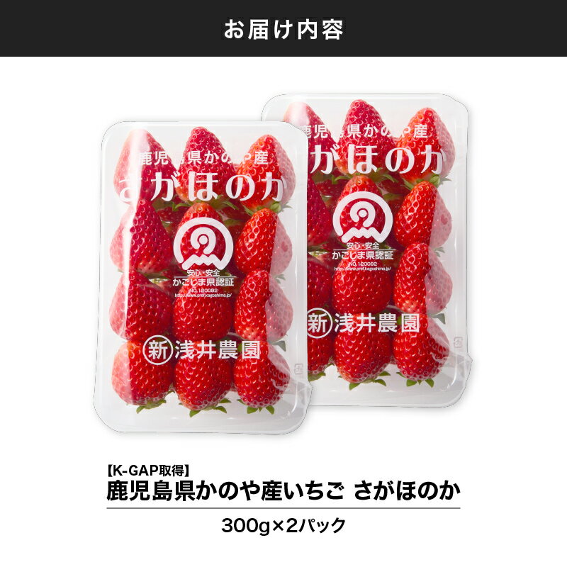 - 【ふるさと納税】【期間限定】K-GAP取得 鹿児島県かのや産いちご さがほのか 計600g 300g×2パック いちご イチゴ 苺 ストロベリー さがほのか 国産 果物 フルーツ 旬 冷蔵 浅井農園 鹿児島 鹿屋市 おすすめ ランキング プレゼント ギフト