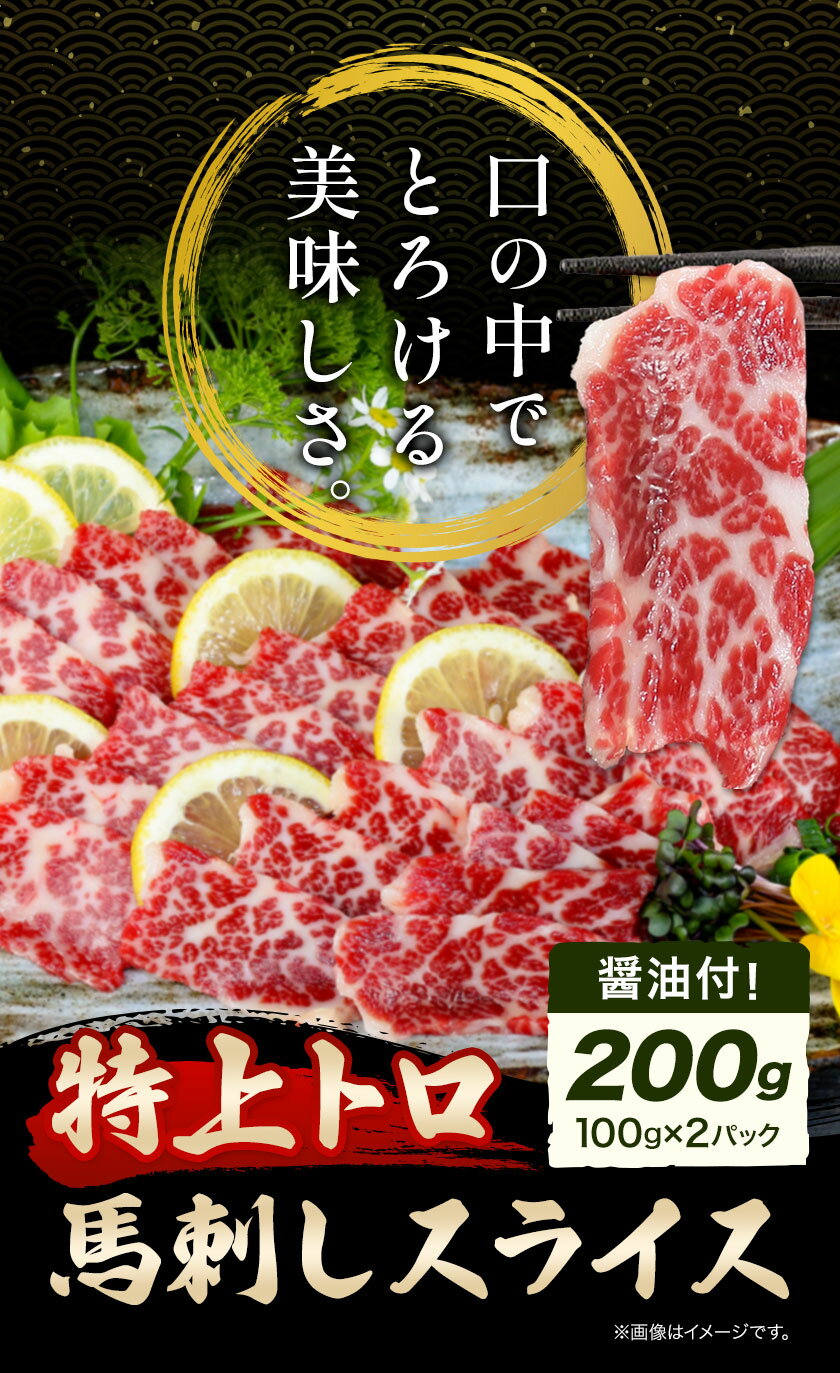 - 【ふるさと納税】馬刺し スライス 特上 トロ 200g 100g×2パック 醤油付き 5ml×2袋 桜屋《30日以内に出荷予定(土日祝除く)》熊本県 菊池市 送料無料 肉 馬肉 馬さし 霜降り 特上トロ