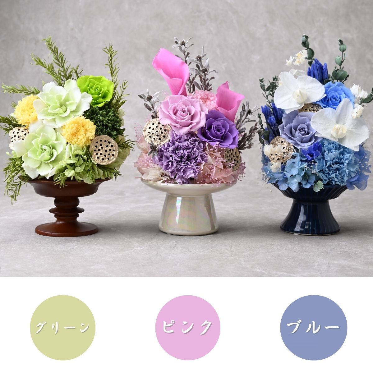 【ふるさと納税】プリザーブドフラワー 仏花(陶器)<選べるカラー> | プリザーブドフラワー 仏花 花 お供え 法事 ギフト ケース入り 長持ち 水やり不要 保存 コンパクト きれい ブルー ピンク グリーン フラワーアレンジメント 四十九日 おくやみ 供花 埼玉県 東松山市