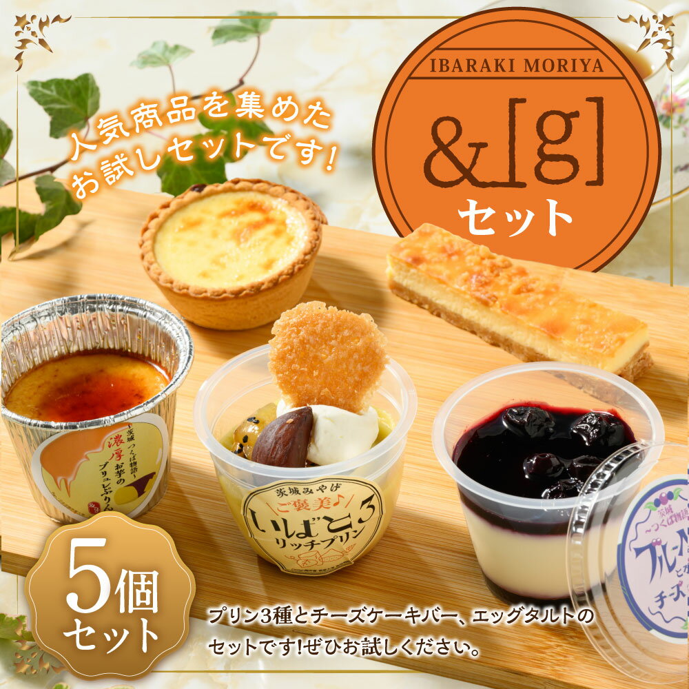 【ふるさと納税】[&g]セット(いばとろリッチプリン、濃厚お芋のブリュレプリン、とろ生チーズプリン、チーズケーキバー、エッグタルト) | 計5個セット 合計295g 1箱 プリン チーズケーキバー エッグタルト スイーツ デザート お菓子 洋菓子 焼き菓子 おやつ 冷凍 送料無料