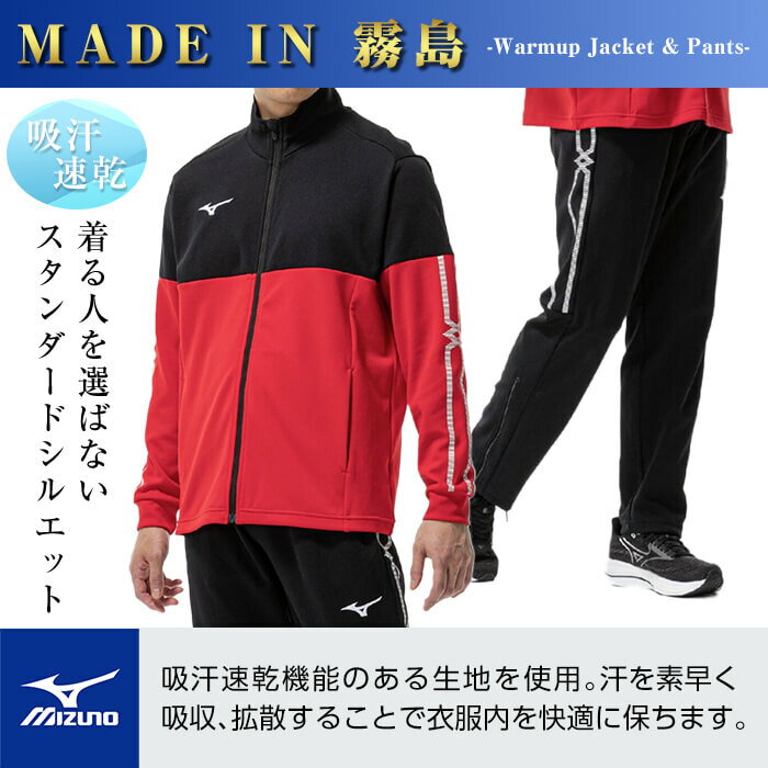 - ミズノ・ウォームアップ上下セット(ジャケット:96カラー、パンツ:96カラー・XS~3XL) 日本製 国産 スポーツ 運動 トレーニング ウエア ウェア 吸汗速乾 セットアップ ランニング ジャージ【ミズノ】