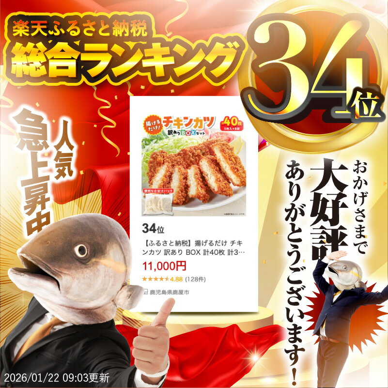 - 【ふるさと納税】揚げるだけ チキンカツ 訳あり BOX 計40枚 計3.6kg (5枚入り 450g × 8袋) 業務用 規格外品 おかず お弁当 おつまみ 使いやすい 小分け パック 惣菜 総菜 チキン 鶏肉 国産 むね肉 揚げ物 鹿鳥食品 鹿児島県 鹿屋市 おすすめ ランキング プレゼント ギフト