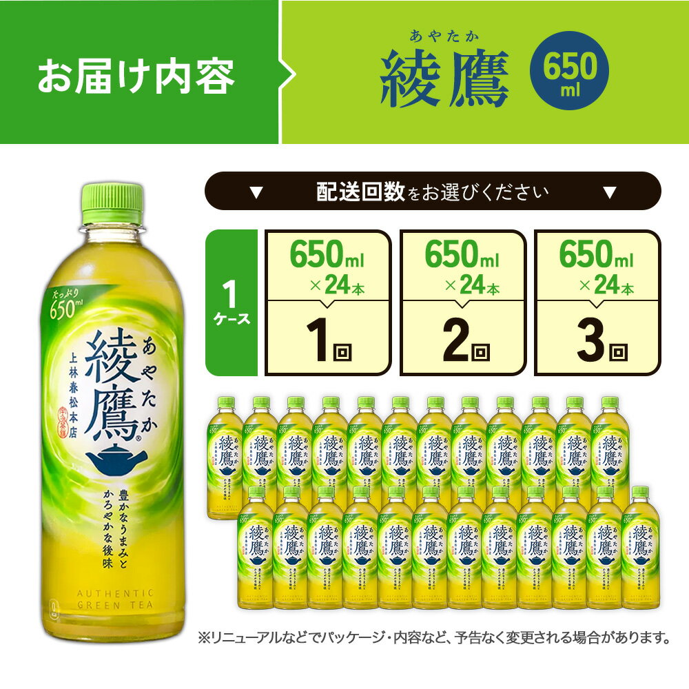 【ふるさと納税】【発送回数 選べる】綾鷹 650ml PET【コカ・コーラ】ペットボトル 1ケース(24本) 定期便 2回(48本) 3回(72本) セット お茶 緑茶 日本茶 茶葉 飲料 ドリンク 500ml + 150ml 送料無料