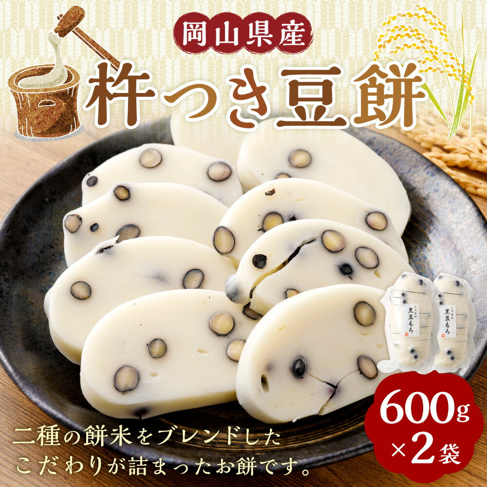 【ふるさと納税】杵つき豆餅 約600g×2袋 計約1.2kg 岡山県美咲町産 豆餅 黒豆 黒大豆 餅 もち おもち 塩味 なまこ型 カット ヒメノモチ ヒヨクモチ もち米 岡山県 美咲町 送料無料【6月~9月発送不可】