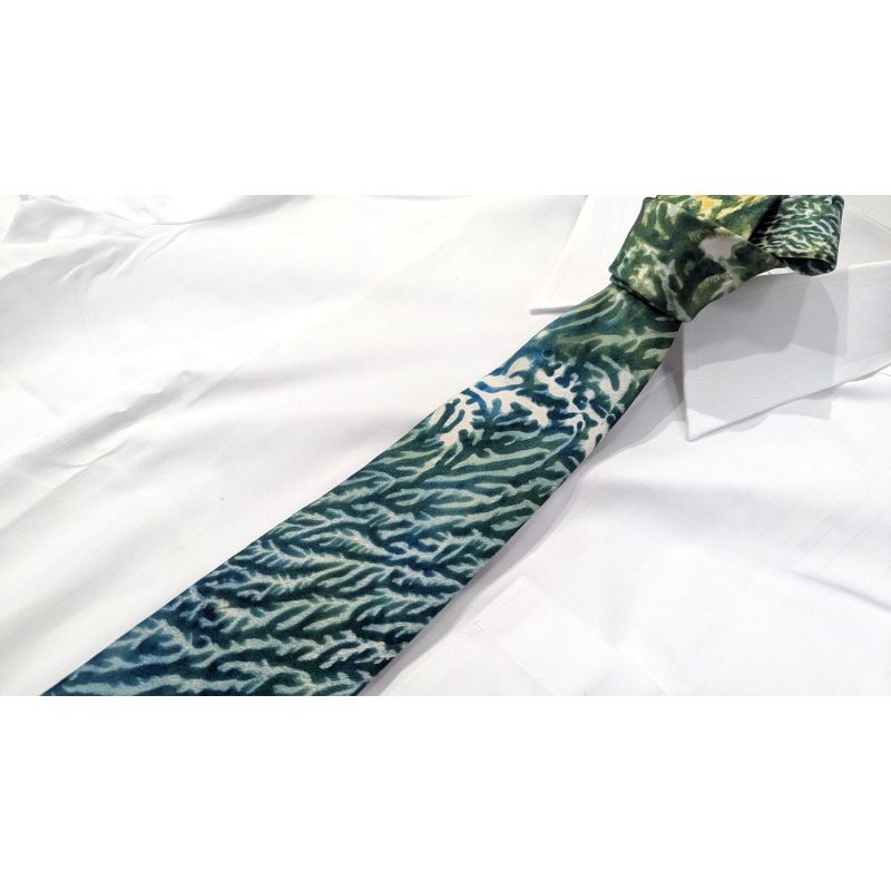 - 【ふるさと納税】 墨流し染 シルクネクタイ (緑珊瑚柄) / 染美堂 絹 サテン織 奈良県 葛城市【snbd002】