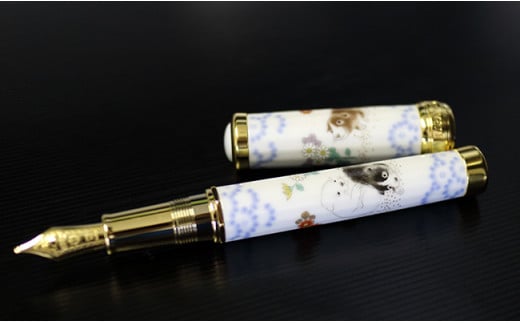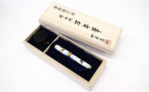 - 香蘭社 有田焼創業400年記念 万年筆 染錦「遊犬の図」【佐賀ダンボール】有田焼 染錦 犬 可愛い かわいい コラボ セーラー万年筆 A1400-7