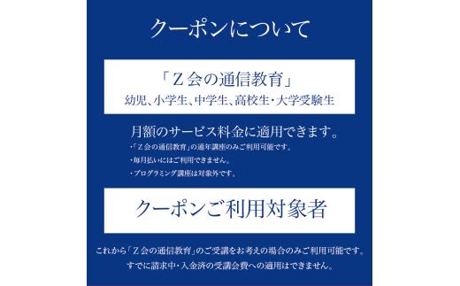 - Z会 通信教育 クーポン 3000円分 高校生向けコース 教育 学習 通信 学び 大学受験対策 大学進学勉強 自宅学習 タブレット学習 映像授業 デジタル学習 教材 問題集 テスト対策 国語 数学 英語 理科 社会 株式会社Z会 三島市 静岡県