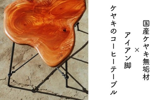 - 【一点もの】ケヤキのコーヒーテーブル|国産ケヤキ無垢材×アイアン脚 ローテーブル 日本製 E-mo-A08A