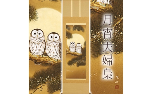 掛け軸「月宵夫婦梟」 武藤高雅 尺五立 サイズ:54.5×190cm 桐箱付 掛け軸 和室 おしゃれ 日本画 表装 床の間